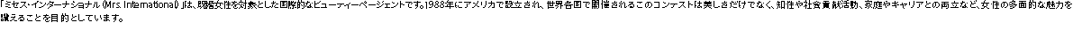 \Pick-up! インタビュー/ミセス・インターナショナル 2025 ファイナリスト菊池 有里子 さん